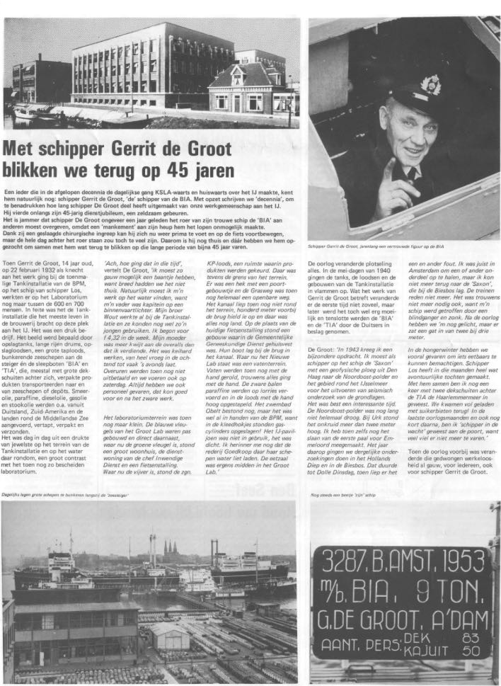 De Bia heeft duizenden werknemers overgevaren en kent vele verhalen en herinneringen. Opvarenden moesten bijvoorbeeld opletten om op tijd de voeten in de lucht te doen wanneer de golfslag van kruisende vaart door de gangboorden spoelde. Vooral nieuwe werknemers en sollicitanten stapten nogal eens met natte voeten van boord. De BIA voer van het Centraal Station over het IJ naar het Research Lab van Shell.